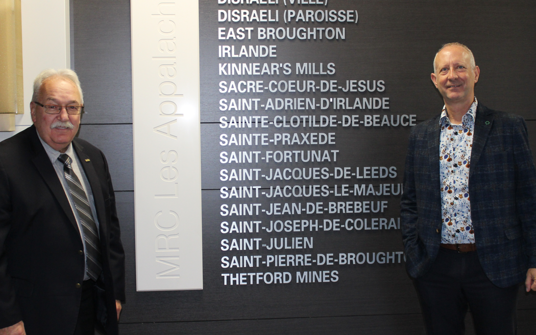 Paul Vachon, préfet de la MRC des Appalaches et Mathieu Cliche, directeur général de la Caisse Desjardins de la Région de Thetford.