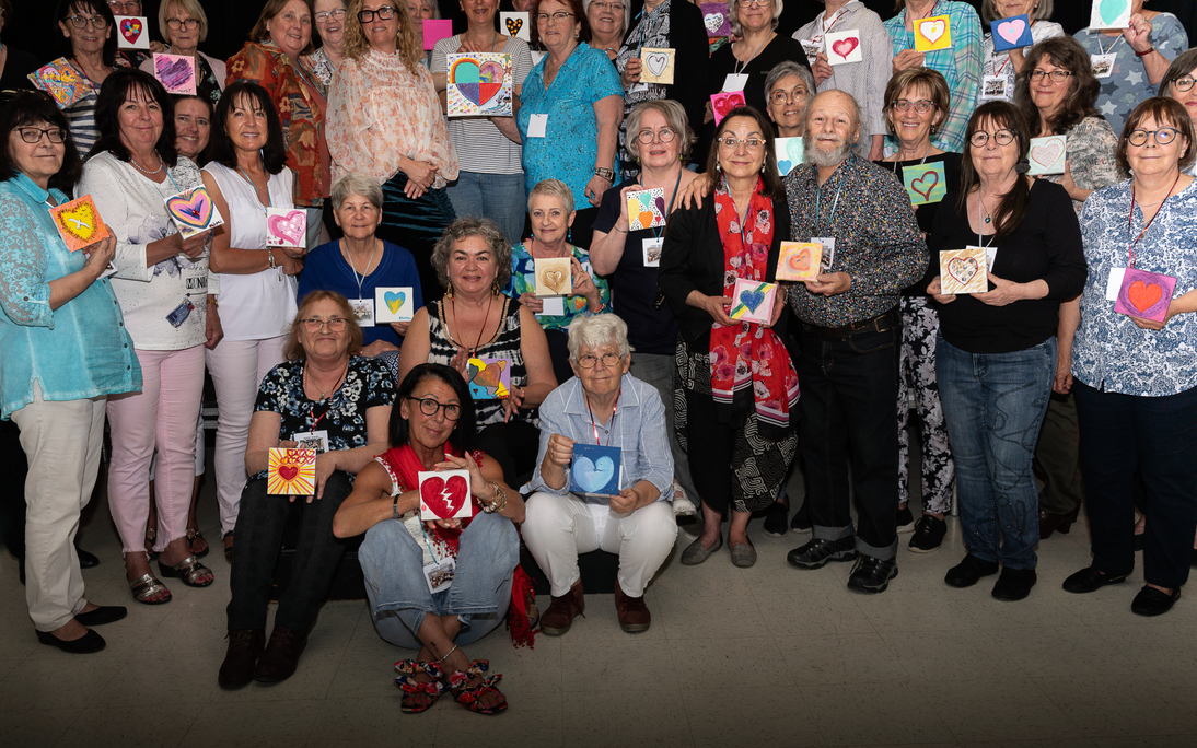 Intitulée S'en donner à cœur joie, l'œuvre est constituée des petites toiles peintes par chaque personne. Chacune a dessiné un cœur en utilisant les médiums de son choix et les techniques apprises au cours des ateliers. « La thématique évoquant le plaisir que procure une activité artistique et la combinaison des techniques selon les préférences de chaque personne illustrent bien les objectifs poursuivis par ce projet culturel de la MRC », mentionne Jacynthe Patry, préfète de la MRC des Appalaches. Les ateliers ont répondu aux attentes des participantes à savoir de développer leur créativité, de socialiser et de sortir de leur zone de confort tout en ayant du plaisir.