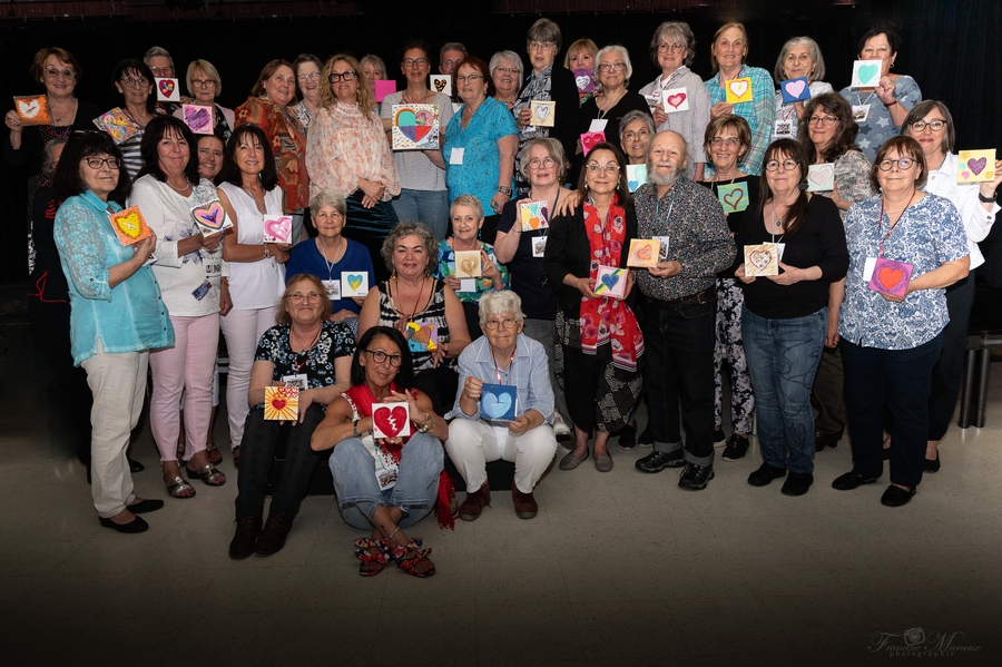 C'est dans une ambiance festive et colorée que la MRC des Appalaches a mis la touche finale à son projet d'ateliers d'exploration artistique destinés aux 55 ans et plus de la région. Une quarantaine de participantes se sont réunies à la Maison de la culture de Thetford Mines le jeudi 15 juin pour exposer fièrement les pièces réalisées au cours des ateliers et contribuer à la création d'une œuvre d'art collective.