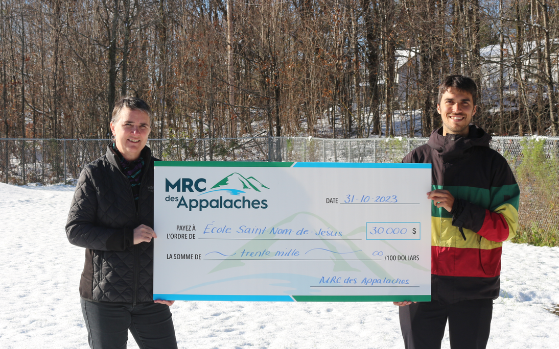 Dans le cadre de son appel à projets pour le Fonds plein air 2023-2025, la MRC des Appalaches est ravie d'annoncer l'octroi d'une aide financière de 30 000 $ à l'école Saint-Nom-de-Jésus située à Beaulac-Garthby. Ce montant servira à l'aménagement d'une classe extérieure qui permettra de bonifier le programme de pédagogie par le plein air.