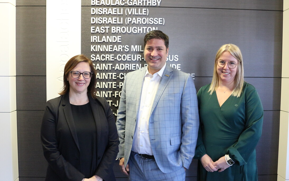 De gauche à droite sur la photo : Isabelle Lecours, députée de Lotbinière-Frontenac, Marc-Alexandre Brousseau, préfet de la MRC des Appalaches et Sylvie Marcotte, directrice générale de la Caisse Desjardins du Carrefour des lacs.