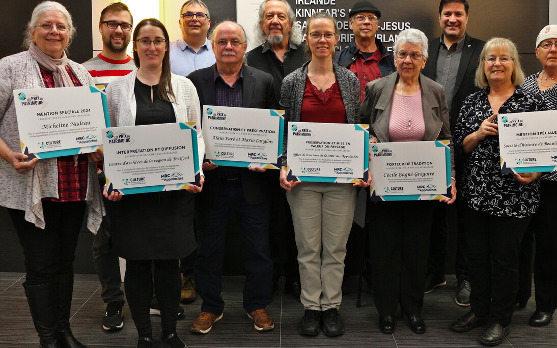 C'est lors d'une cérémonie tenue à la MRC des Appalaches mercredi soir dernier que les organisations et les individus récipiendaires des Prix du patrimoine 2024 ont été dévoilés. Cet événement biennal organisé par Culture Capitale-Nationale et Chaudière-Appalaches a pour objectif de faire reconnaître les réalisations locales qui ont eu un impact significatif dans leur milieu et qui ont contribué à la mise en valeur du patrimoine.