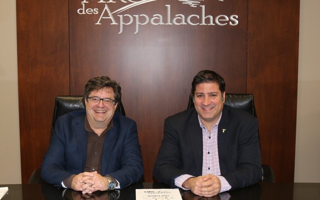 Sur la photo, de gauche à droite : Rick Lavergne, directeur général de la MRC des Appalaches et Marc-Alexandre Brousseau préfet de la MRC des Appalaches.