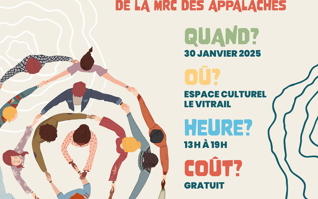 « Au cours de ce salon, différents thèmes seront abordés dans le but de donner de l'information cruciale comme par exemple, les changements de saisons, la recherche d'emploi ou encore sur notre système d'éducation », mentionne Véronique St-Gelais, chargée de projet à l'immigration de la MRC es Appalaches. Cet événement a été rendu possible avec le soutien financier du ministère de l'Immigration, de la Francisation et de l'Intégration dans le cadre du Programme d'appui aux collectivités.