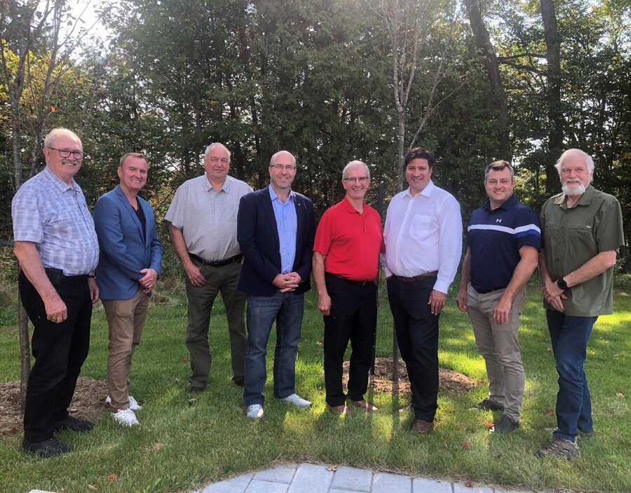 De gauche à droite : Bernard Fortier (maire de Joly, MRC de Lotbinière), Yvan Charest (maire de Dosquet, MRC de Lotbinière), Gervais Pellerin (maire d'Inverness, MRC de L'Érable), Daniel Turcotte (maire de Val-Alain, préfet MRC de Lotbinière), Gilles Fortier (maire de Princeville, préfet de la MRC de L'Érable), Marc-Alexandre Brousseau (maire de Thetford Mines, préfet de la MRC des Appalaches), Jean-Francois Labbé (maire de Plessisville, MRC de L'Érable), Gilles Drolet (maire de Beaulac-Garthby, MRC des Appalaches).