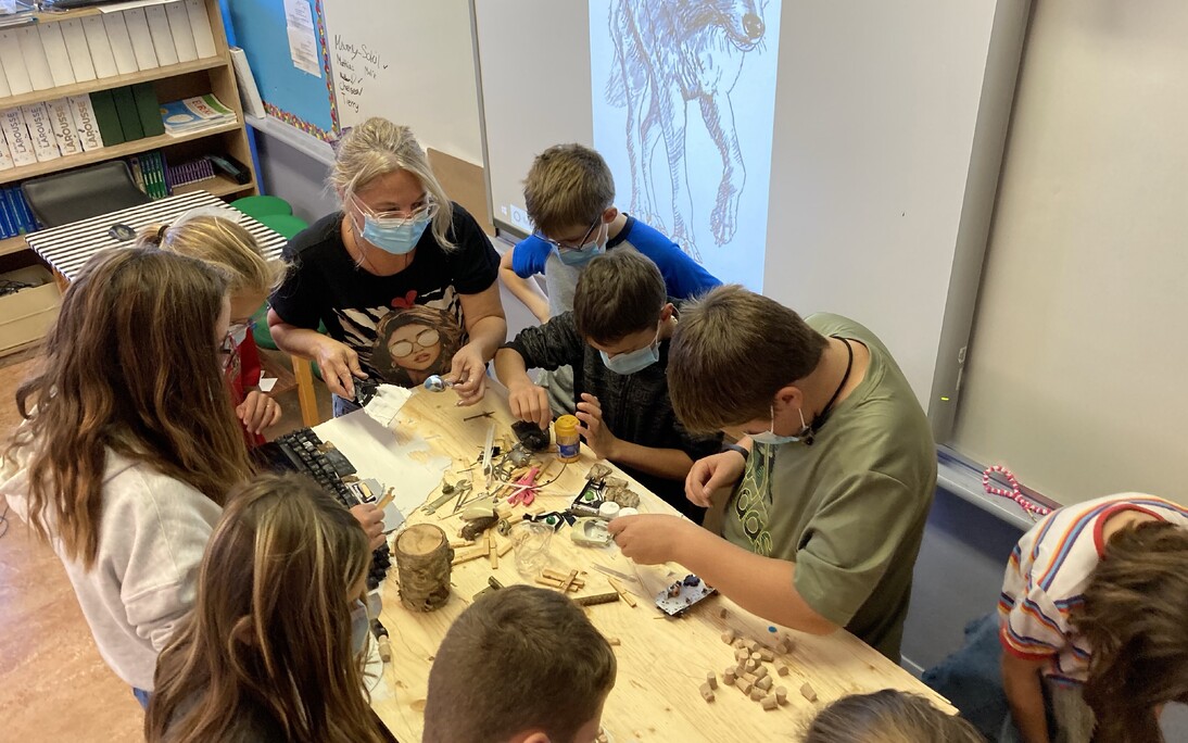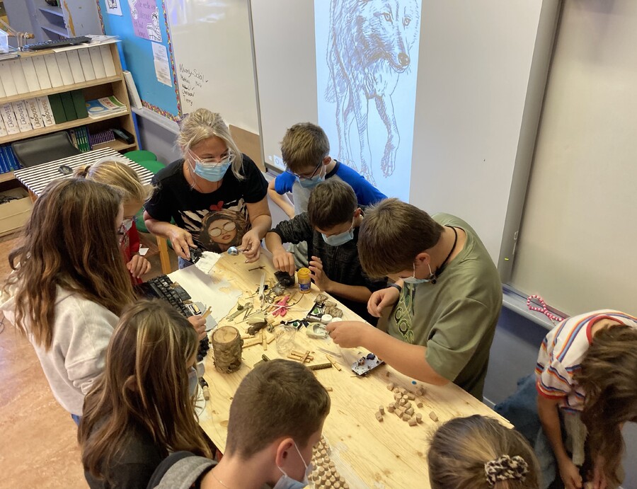 Les élèves de 6e année de l'école Aux-Quatre-Vents de Saint-Méthode à Adstock ont participé au tout premier atelier de création d'une œuvre collective faite à partir de matériaux récupérés.