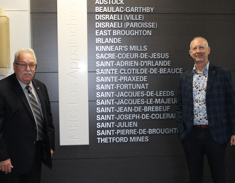 Paul Vachon, préfet de la MRC des Appalaches et Mathieu Cliche, directeur général de la Caisse Desjardins de la Région de Thetford.