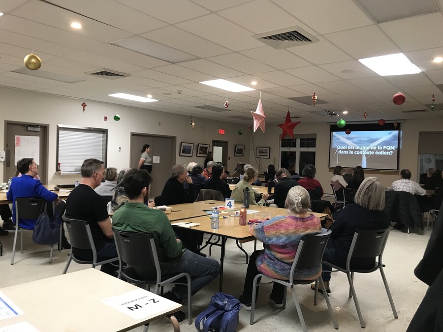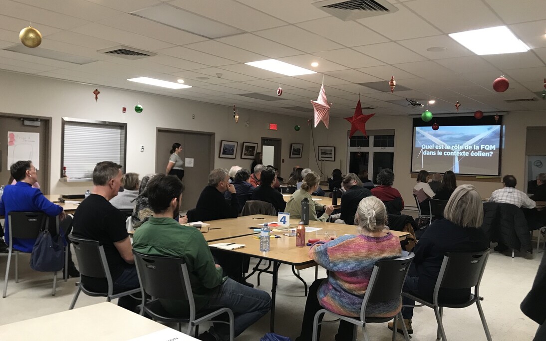 C'est lors de séances d'information participatives tenues à Adstock et à Plessisville les 13 et 14 décembre, que tout près d'une centaine de citoyens et citoyennes ont pu se prononcer sur les préoccupations face au développement éolien et sur l'implication de leur communauté dans le déroulement du projet.