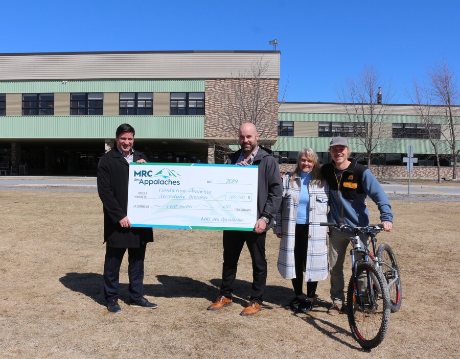 Dans le cadre de son appel à projets pour le Fonds plein air 2023-2025, la MRC des Appalaches est heureuse d'annoncer l'octroi d'une aide financière de 100 000 $ à la Fondation Jeunesse Secondaire Disraeli. L'aide financière servira principalement à l'aménagement d'une piste d'habileté pour vélo sur le terrain de la Polyvalente de Disraeli et à l'achat d'équipements pour la concentration plein air.