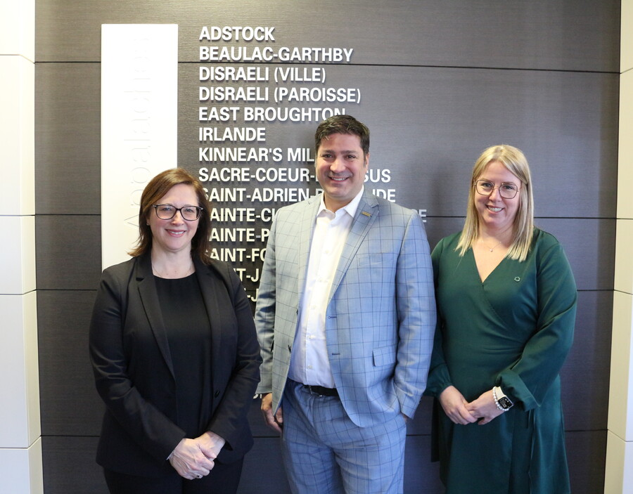 De gauche à droite sur la photo : Isabelle Lecours, députée de Lotbinière-Frontenac, Marc-Alexandre Brousseau, préfet de la MRC des Appalaches et Sylvie Marcotte, directrice générale de la Caisse Desjardins du Carrefour des lacs.