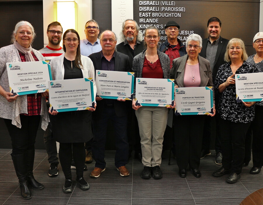 C'est lors d'une cérémonie tenue à la MRC des Appalaches mercredi soir dernier que les organisations et les individus récipiendaires des Prix du patrimoine 2024 ont été dévoilés. Cet événement biennal organisé par Culture Capitale-Nationale et Chaudière-Appalaches a pour objectif de faire reconnaître les réalisations locales qui ont eu un impact significatif dans leur milieu et qui ont contribué à la mise en valeur du patrimoine.