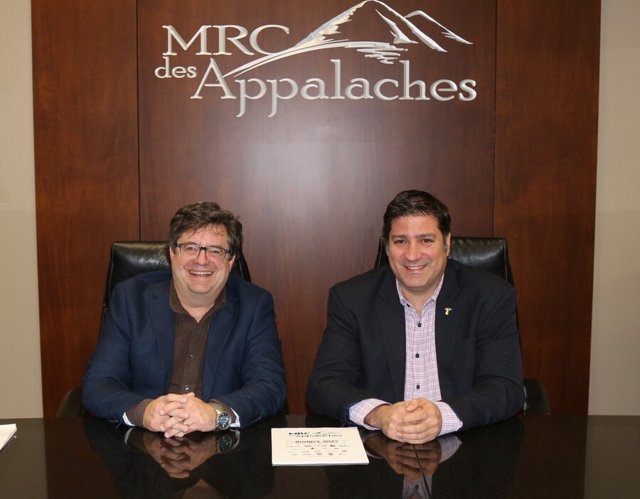 Sur la photo, de gauche à droite : Rick Lavergne, directeur général de la MRC des Appalaches et Marc-Alexandre Brousseau préfet de la MRC des Appalaches.