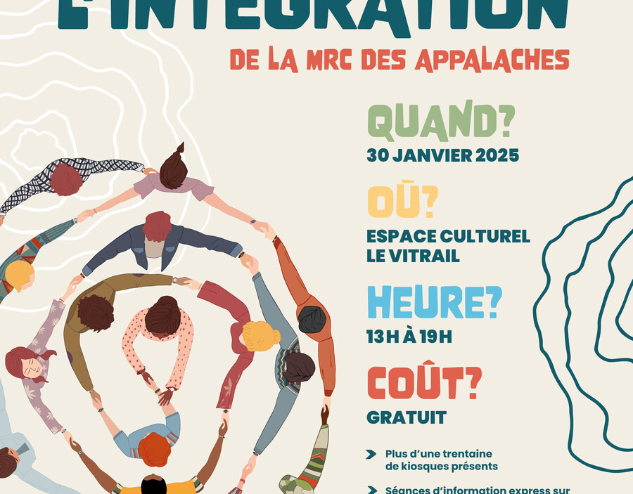 La MRC des Appalaches est fière d'annoncer la toute première édition de son Salon de l'intégration, un événement unique dédié à toutes les personnes immigrantes de la région. Le salon se déroulera le 30 janvier 2025, de 13 h à 19 h, à l'Espace culturel le Vitrail situé au 1254, rue Ste-Marthe à Thetford Mines. La MRC invite les nouveaux citoyens issus de l'immigration de son territoire à venir rencontrer les organismes et les intervenants mobilisés afin d'accompagner les personnes immigrantes dans leur intégration.
