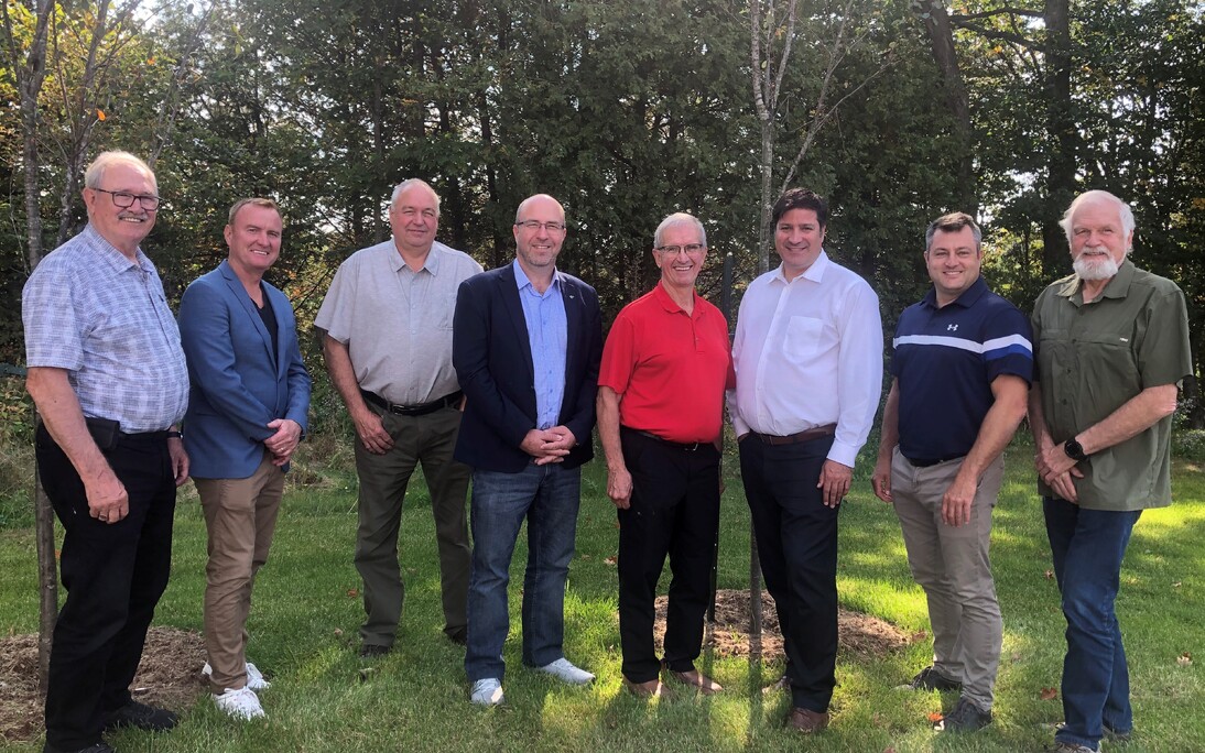 De gauche à droite : Bernard Fortier (maire de Joly, MRC de Lotbinière), Yvan Charest (maire de Dosquet, MRC de Lotbinière), Gervais Pellerin (maire d'Inverness, MRC de L'Érable), Daniel Turcotte (maire de Val-Alain, préfet MRC de Lotbinière), Gilles Fortier (maire de Princeville, préfet de la MRC de L'Érable), Marc-Alexandre Brousseau (maire de Thetford Mines, préfet de la MRC des Appalaches), Jean-Francois Labbé (maire de Plessisville, MRC de L'Érable), Gilles Drolet (maire de Beaulac-Garthby, MRC des Appalaches).