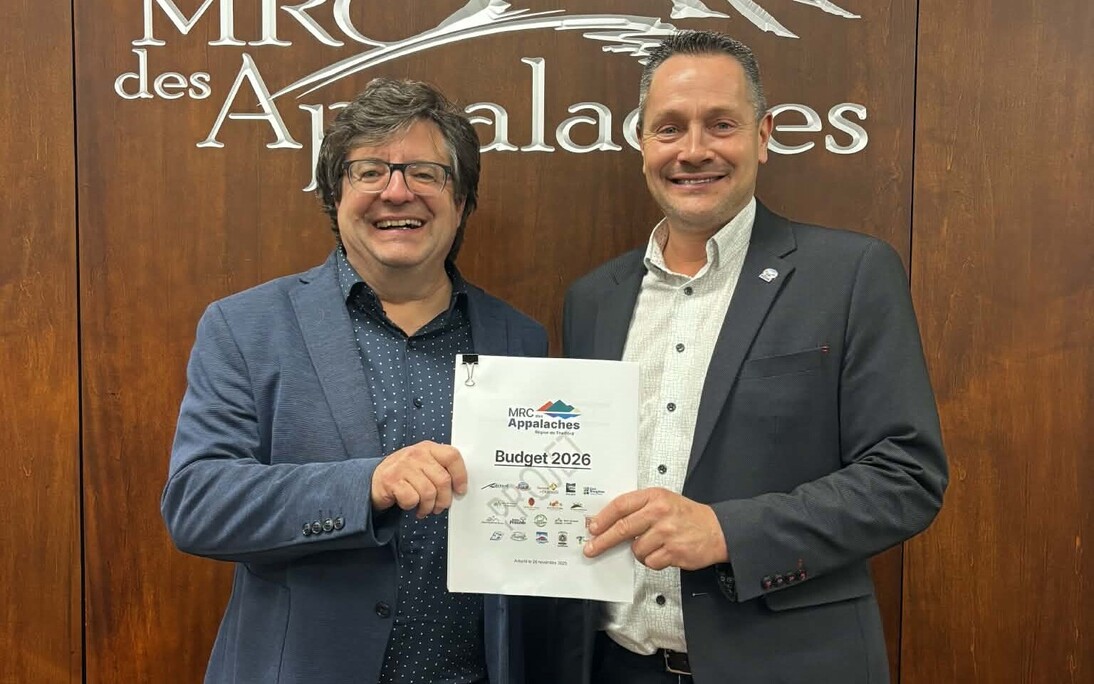 La MRC des Appalaches est heureuse d'annoncer l'adoption de son budget de 8 847 298 $ pour l'année 2026. Adopté lors de la séance du conseil des maires du 26 novembre dernier, ce nouveau budget, représente le premier jalon de la nouvelle équipe de maires dont rappelons-le, qui compte 9 nouveaux élus les 19 membres de la table de la MRC.